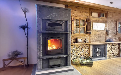 Beliebt fürs Landhaus: Der massive Backrohr-Speckstein-Speicherofen