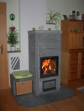 Sie geben die sanfte Strahlungswärme von ganz unten bis ganz oben zur Deckelplatte ab (siehe die Zugführung in der Abbildung), d.h. sie haben keine aggressive Konvektionswärme, wo nur die Luft erwärmt wird und sich dadurch auch der Raum sehr schnell überheizt, sondern durch die langanhaltende infrarote Strahlungswärme (bis zu 24 h) wird der Körper erwärmt, die Staubbelastung bleibt gering, da es zu keiner Durchwirbelung durch die Erhitzung der Luft kommt. Es ist für den menschlichen Körper einfach gesundheitsfördernd, sich an den Ofen zu lehnen, sich ordentlich durchwärmen zu lassen und dabei vielleicht ein gutes Buch zu lesen oder einfach dadurch physisch und psychisch entspannt der Musik lauschen zu können.